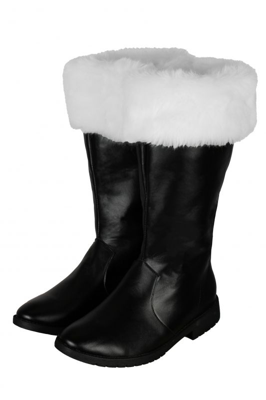 Schwarze Stiefel mit Plüschrand, optimal für das Kostüm des Nikolauses der Weihnachtsmann